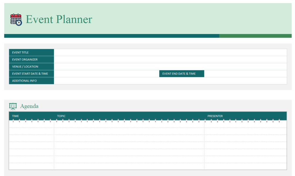 - Event Essentials: Capture core details like the event title, organizer, venue, and start/end times, with a space for additional notes to keep everything on track.