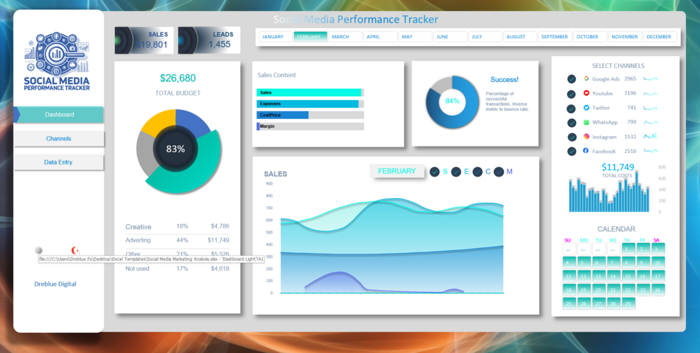 Gain actionable insights with our Microsoft Excel Social Media Performance Tracker—your essential tool for mastering social media metrics and enhancing campaign outcomes. This interactive Excel dashboard allows you to dive deep into specific days or months, empowering you to analyze, optimize, and maximize your social media strategy with precision. Track all key metrics for a complete, easy-to-access view of your performance.